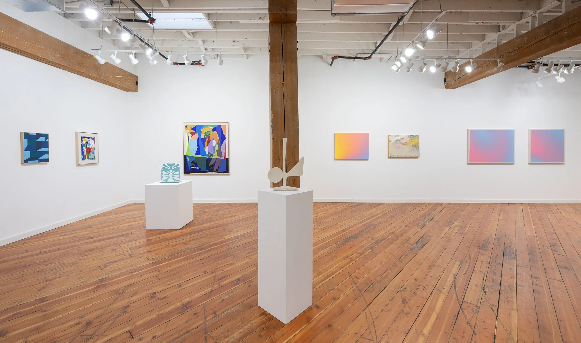 Cody Hudson’s brightly rendered paintings, drawings, and steel sculptures explore the emotional associations of shape and color. His hard-edged forms echo the playful collages of Henri Matisse, at times evoking flora and vessels but often remaining open-ended regarding their subjects. Hudson’s work ranges from small-scale prints to murals, including a major commission by the Chicago Transit Authority as part of its 2006 Arts in Transit program. In 2007, Hudson had his first solo museum exhibition at the Museum of Contemporary Art Chicago, which contextualized his practice by linking it to skateboarding and other elements of contemporary youth culture. The artist’s lifetime immersion in punk and zine culture is evident in his embrace of graphic shapes and freeform compositions. He also runs Struggle Inc., a graphic studio that has collaborated with brands like Nike and Stüssy.