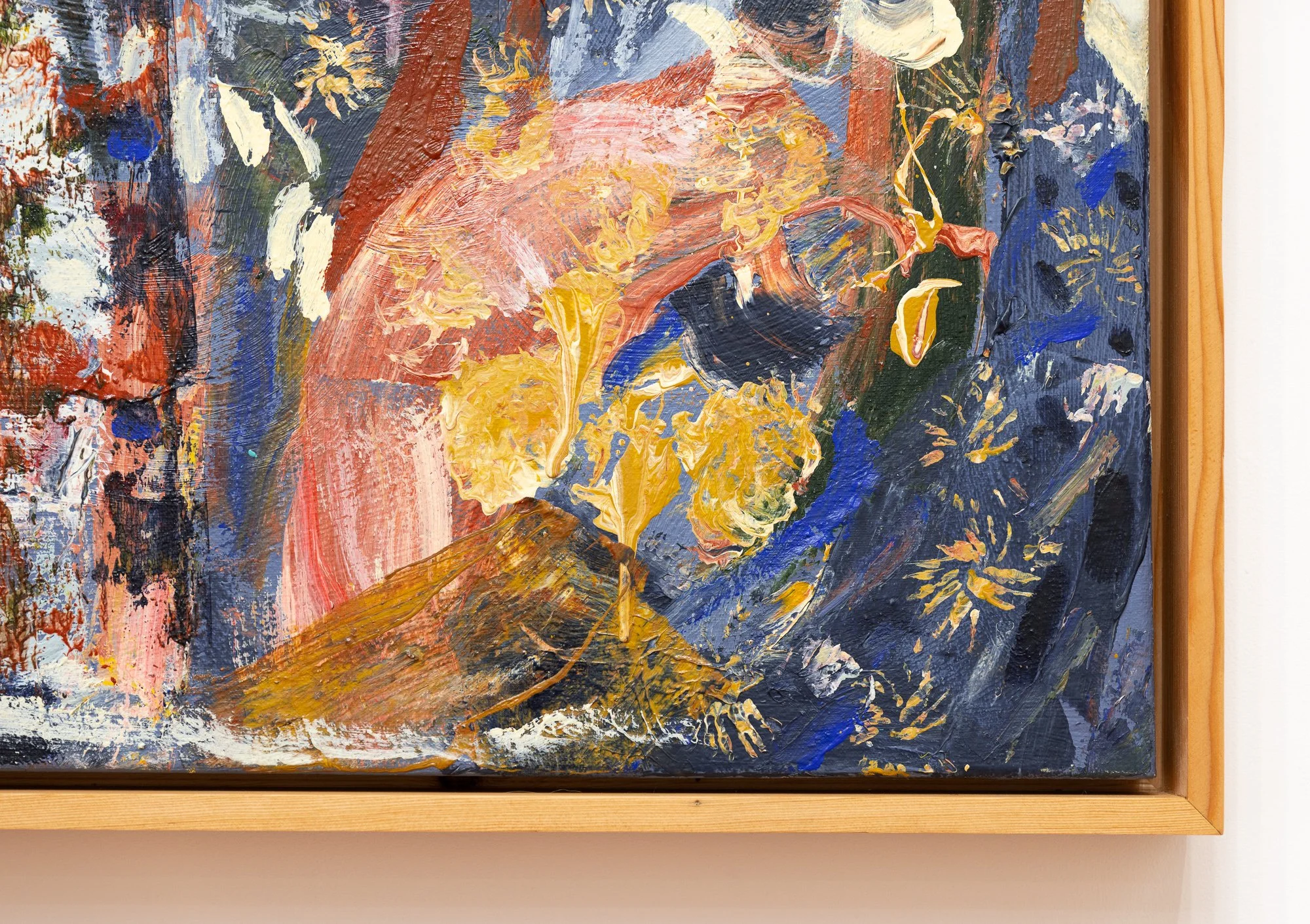 The Angels Pool Their Tips At Night is Diederich’s testimony to the symbiotic dance of flora and fauna within nature, particularly her admiration for insights gleaned from migratory birds. With a practice deeply rooted in observation, Diederich’s gestural brush strokes evoke the lyrical, excited movement of wind rushing through trees or the invisible traces of flight patterns in the sky. Colors tapped from nature blur together with movement, shaking and rustling in the breeze.