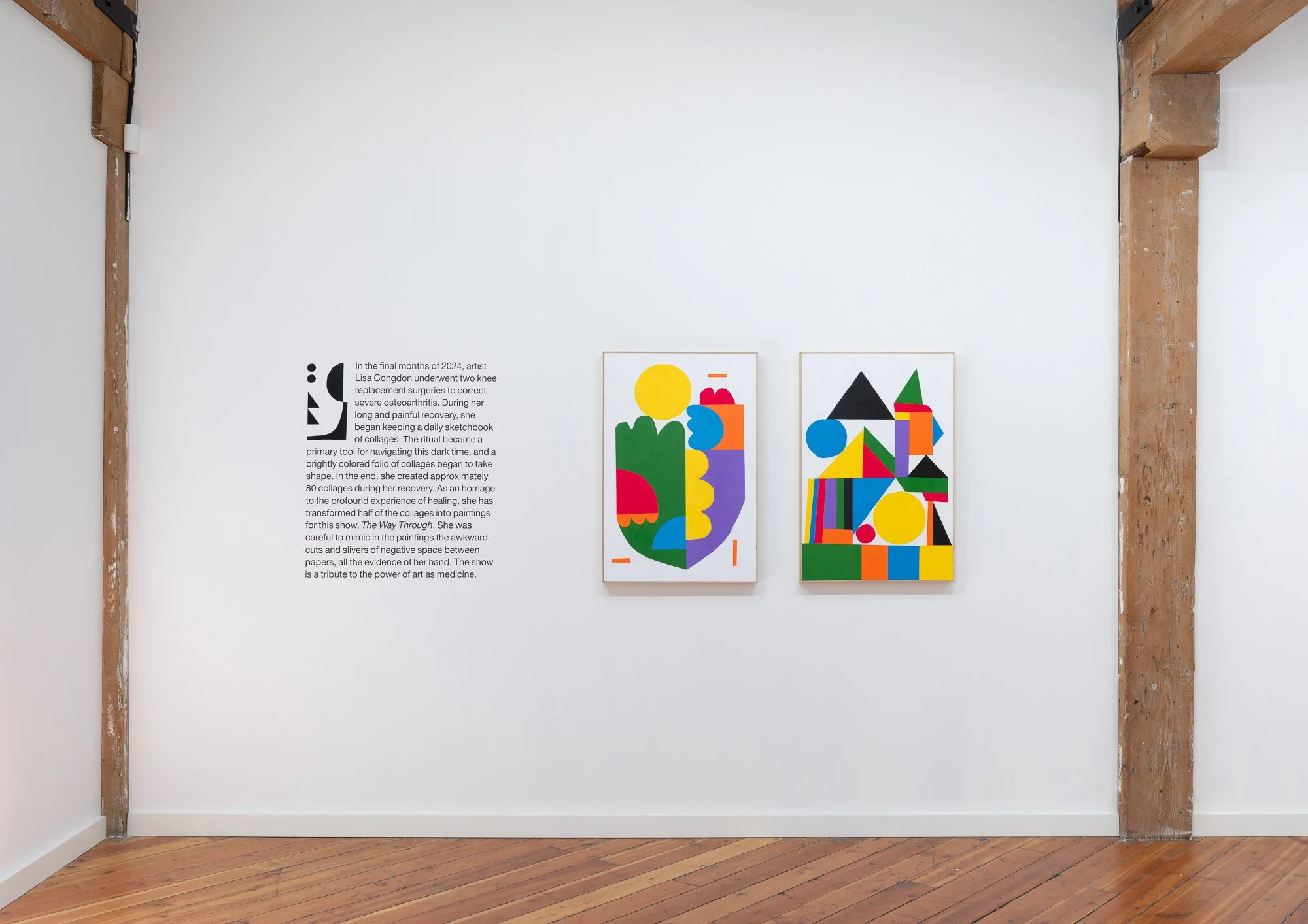 The Way Through represents Congdon’s deeply personal journey of healing after undergoing two knee replacement surgeries in the final months of 2024 due to severe osteoarthritis. During the long and painful recovery process, Congdon turned to a daily sketchbook practice of paper collaging not only as a creative outlet, but also as a means of processing her experience. A brightly colored folio of collages began to take shape.