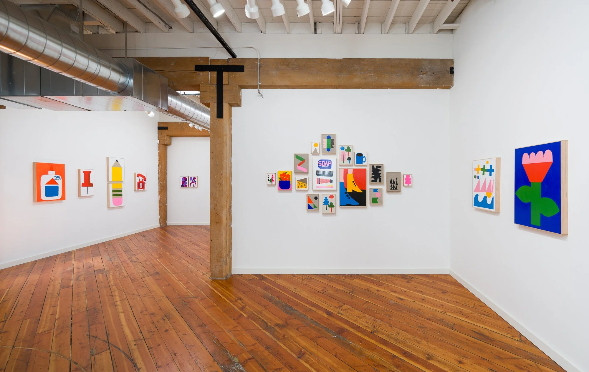 In addition to Congdon’s new paintings, a series of limited-edition serigraphs will be on display in Gallery 2. The series was originally created for Congdon’s 2024 exhibition at Saint Mary’s College of California entitled Hold It Lightly.Exploring themes of joy, liberation, and radical inclusion, these vibrant prints combine Congdon’s signature bold illustrations and hand-lettering. First presented in dialogue with Corita Kent’s historic heroes and sheroes series, the serigraphs reflect the profound personal impact of Kent’s legacy.