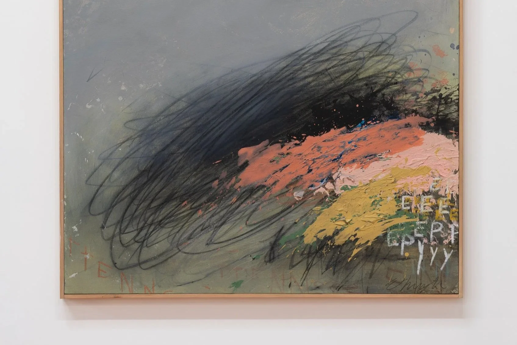 Nate Ethington (b. 1977) is a self-taught abstract painter based in Portland, Oregon. Known for working with acrylic paints, oil pastels and oil sticks, graphite, charcoal, and spray paint on canvas, Ethington creates striking compositions that explore the interplay of color and texture. He is best known for his use of tones and tints, where thick impasto focal points create tension against often neutral fields of color, scattered with spontaneous marks and traces of handwriting.