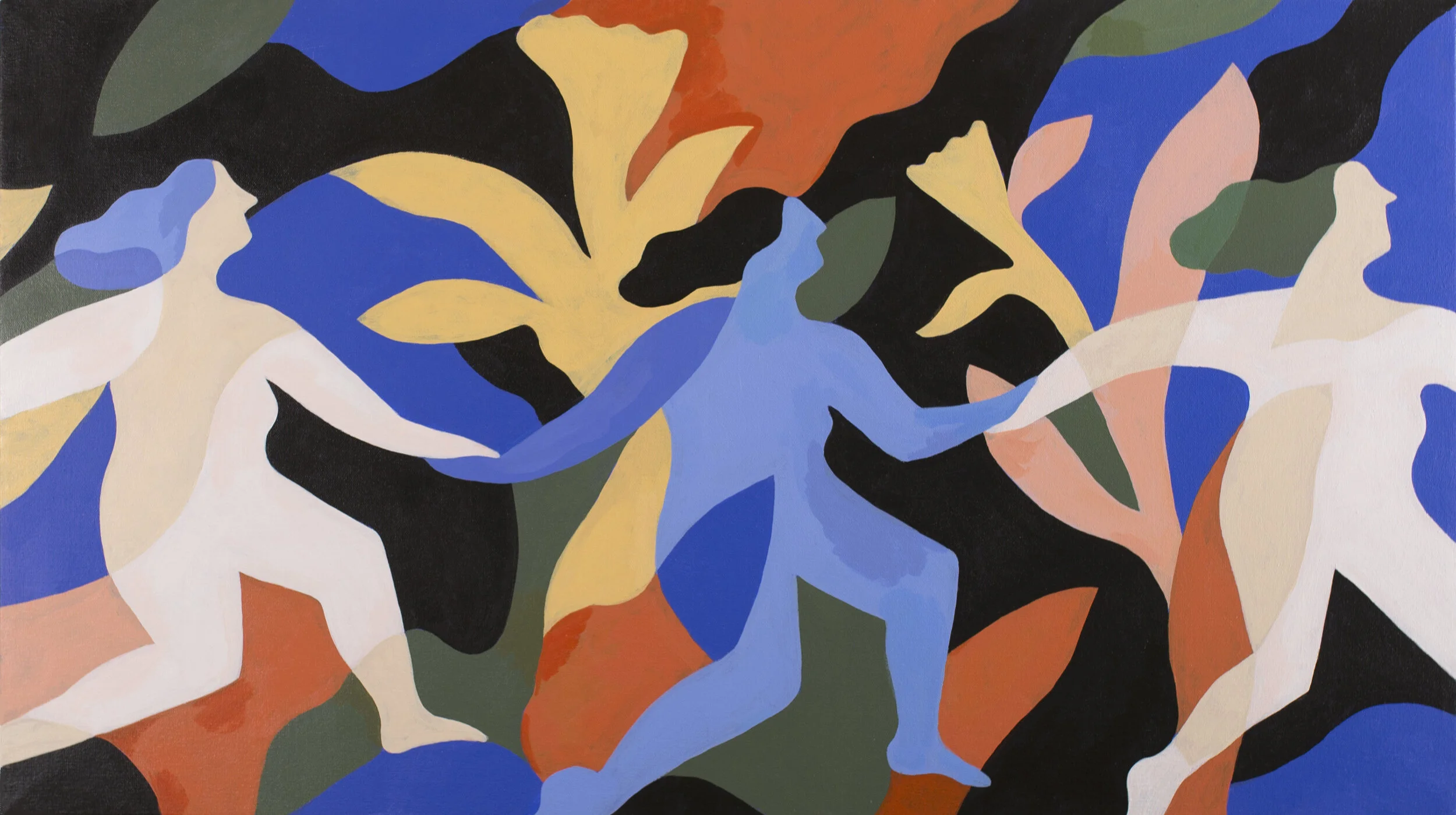 The power of womanhood holds a central place in Rubinstein's work, and her latest output is no exception. Exploring the connection between women with their inner selves and their environments, she transforms physical figures into permeable abstractions, thereby creating an exchange between internal and external experiences. To capture a palpable feeling of the senses, Rubinstein employs emotive colors like the soft purple him of dusk or the warm golden hue of sunshine on skin. Ultimately, the work encourages a nurturing of the self, the environment, and above all else, the present moment.