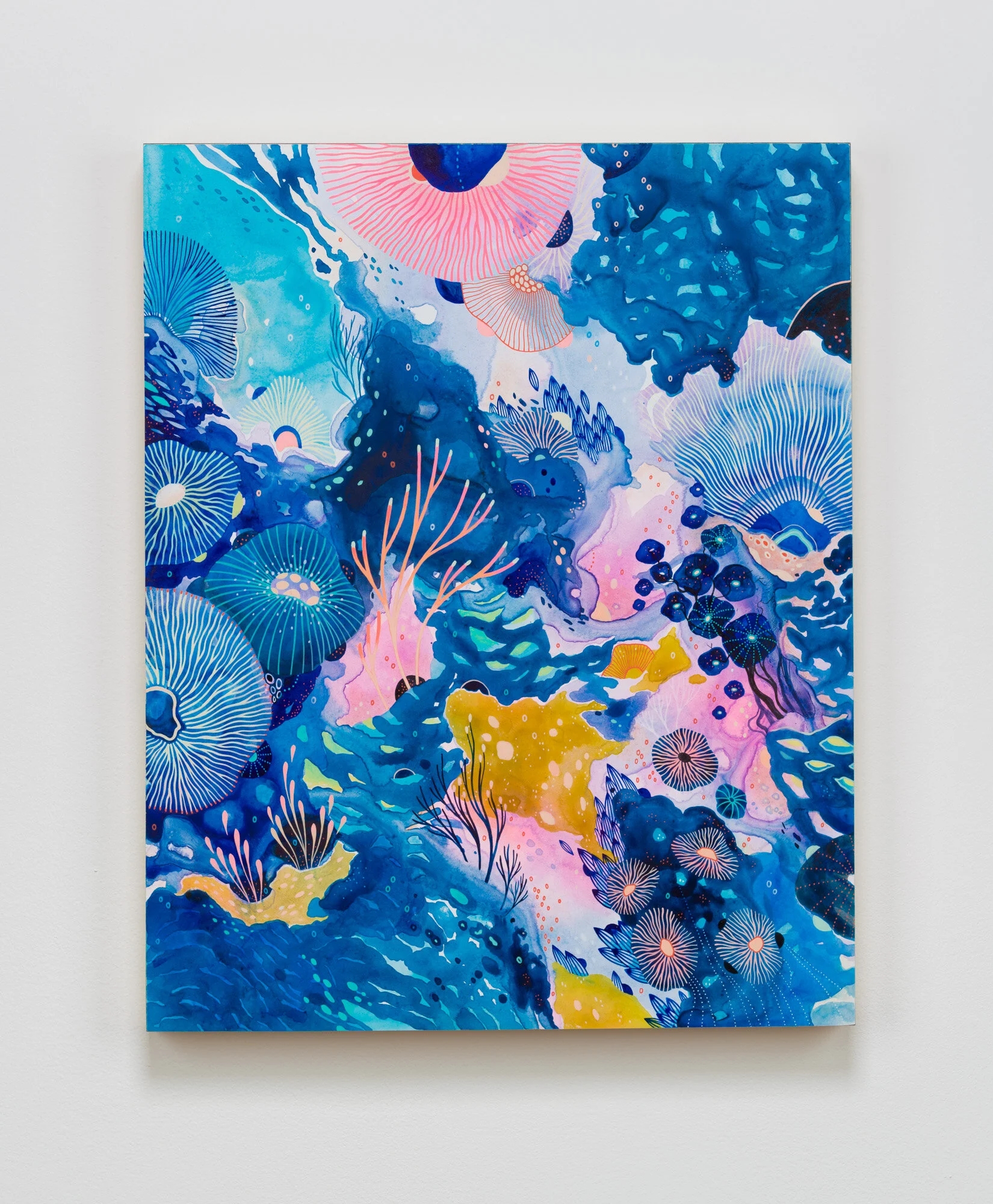 Stephanie Chefas Projects is delighted to welcome Yellena James for her fourth solo exhibition at the gallery entitled "Antidote." Between her masterful brush strokes and brilliant use of color, James invokes a completely vivid and unmistakable world. To enter this terrain is to immerse yourself in a thriving landscape of pure majesty and seemingly endless dimension. It's all rendered with such epic precision that the viewer can practically feel the life-forms moving across the canvas, an entire abyss at their disposal. Imparting relaxation and awe to equal effect, each painting generates boundless discovery and the perfect visual escape.